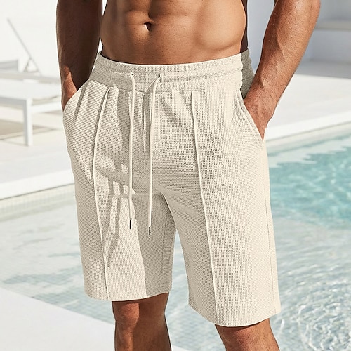 Herren Waffel-Shorts Shorts Sommershorts Freizeitshorts Kordelzug Tasche Elastischer Bund Einfach Komfort Atmungsaktiv Kurz Outdoor Strand Urlaub Sport Lässig Schwarz Weiß Mikroelastisch