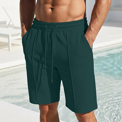 Herren Waffel-Shorts Shorts Sommershorts Freizeitshorts Kordelzug Tasche Elastischer Bund Einfach Komfort Atmungsaktiv Kurz Outdoor Urlaub Sommer Sport Lässig Blau Schwarz Mikroelastisch