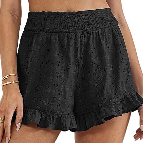 Damen Shorts Sommershorts Strandshorts Freizeitshorts Urlaub Mode Alltagstauglich Kurz Hohe Taille Einfarbig Einfach Tasche Lochmuster Elastischer Bund Komfort Leicht Weich Mikroelastisch Streetwear