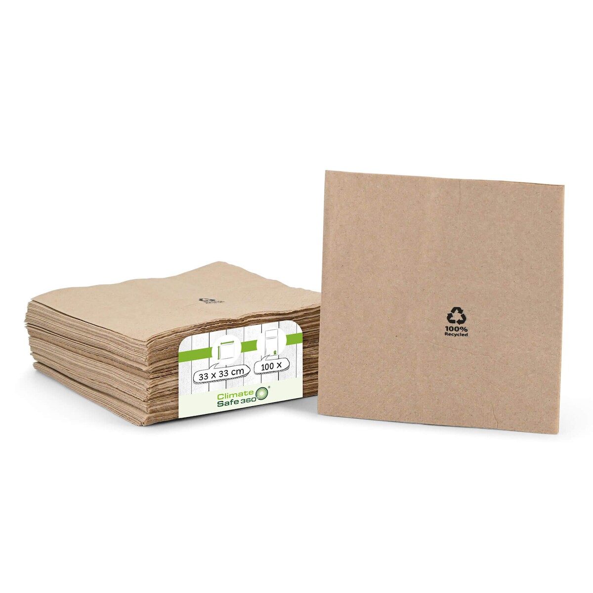 greenbox - Servietten aus recyceltem Papier 33 x 33 cm, 2-lagig, 1/4 Falz, ungebleicht, 100 St.