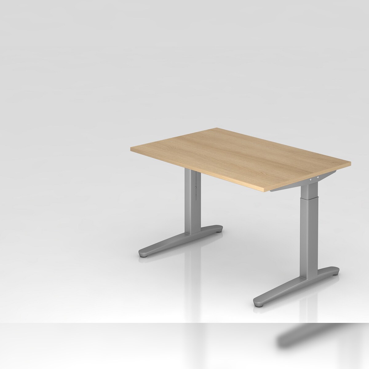 PROREGAL Schreibtisch Mika | Eiche | Silber Gestell | BxT 120x80cm | Arbeitshöhe 65-85cm | höhenjustierbar, 1cm Raster | C-Fuß-Gestell | Bürotisch