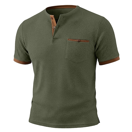 Herren Waffel-Henley-Hemd T-Shirt Kurzarm Henley Sommer Frühling Einfarbig Mode Designer Lässig Knöpfe Lässig Täglich Outdoor Schwarz Weiß Blau Top T-Shirt für Herren