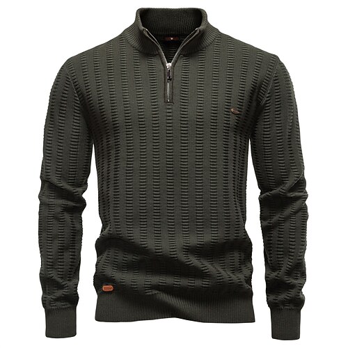 Per uomo Maglione Treccia Maglia Top Regolari Mezza cerniera Colletto Mao Cool Maglione Scuola Vacanza Abbigliamento Primavera Autunno Nero Blu marino scuro S M L