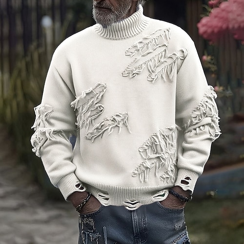 Per uomo Maglione Maglione a maglia A Coste Maglia Top Regolari Lavorato a maglia Strappato Semplice Dolcevita Moda Essenziale Vacanza Abbigliamento quotidiano Abbigliamento Autunno Inverno Nero Beige