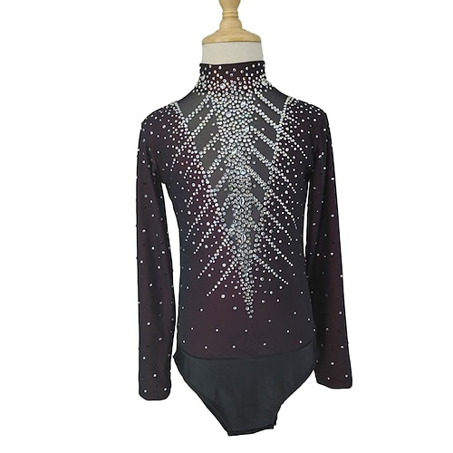 Collant copripattini Giacca in pile per pattinaggio artistico Pantaloni da pattinaggio artistico Per donna Ragazze Pattinaggio sul ghiaccio Giacca Collant Top Nero Patchwork Foro per il pollice