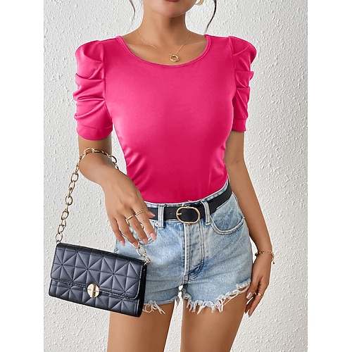 Per donna Maglietta Elegante Casual Manica Corta Manica a Palloncino Girocollo Top Regolari Quotidiano Uscire Weekend Fiocco Senza schiena Blu Nero Verde scuro Rosso rosa Estate Primavera