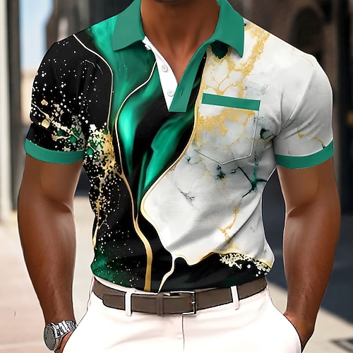 Herren Marmor Poloshirts Kurzarm Polo-Shirts Hemden mit Kragen Business-Casual Outdoor Athleisure Alltagskleidung 3D-Druck Knöpfe Sommer Frühling Blau Rosa Rote