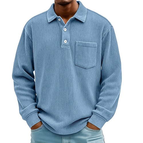 Per uomo Camicia di velluto a coste Magliette polo Informale Sport Bavero Manica lunga Di tendenza Essenziale Color Block Collage Bottoni Primavera Autunno inverno Standard Nero Blu Marrone Verde