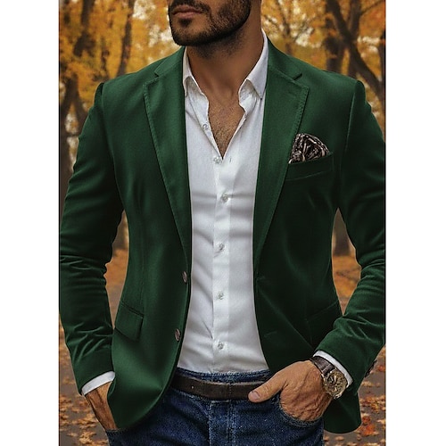 Per uomo Giacca blazer Colletto ad incastro Moda Classico Casual Tinta unita Blazer di velluto Verde militare Nero Marrone Vestibilità standard Monopetto Due Bottoni