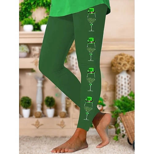 Per donna Leggings Vacanza Essenziale Casual Lunghezza intera Vita AltaPantsGiorno di San Patrizio Grafico Trifoglio Comodità Morbido Confortevole Elasticizzato Quotidiano All'aperto Vacanza Nero