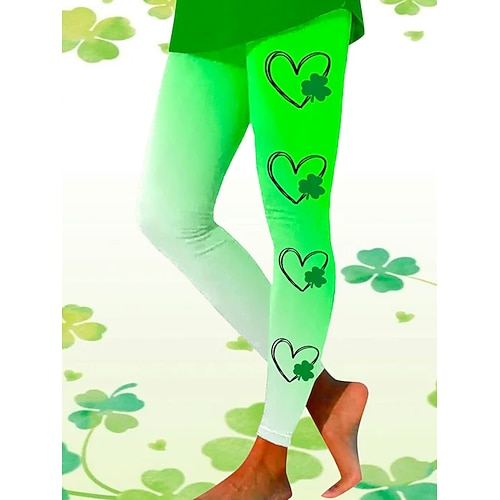 Per donna Leggings Vacanza Casual Lunghezza intera Vita AltaPantsGiorno di San Patrizio Grafico Sfumatura Trifoglio Comodità Morbido Confortevole Elasticizzato Quotidiano All'aperto Vacanza Nero