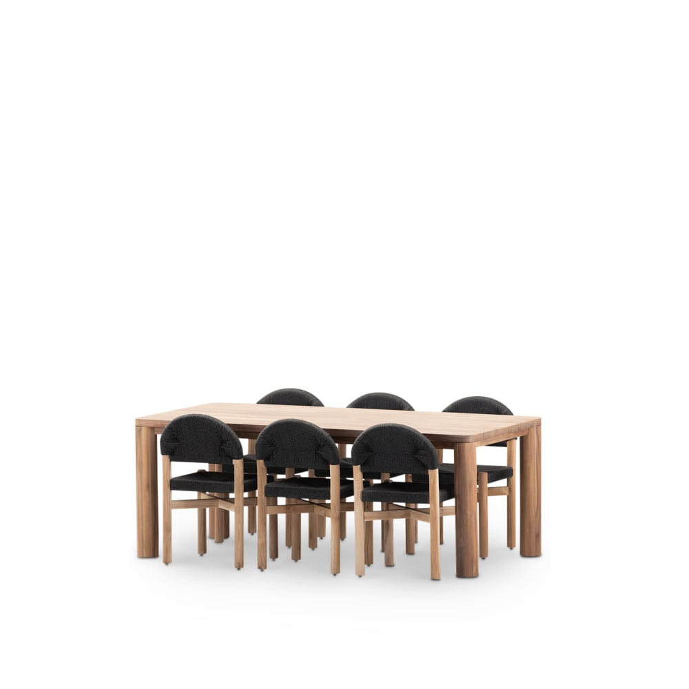 Set di tavolo 200x100cm e 6 sedie in legno e rattan nero