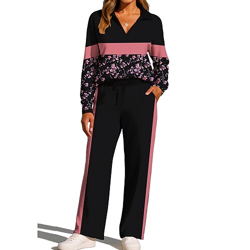 Per donna Maglia Tuta da Ginnastica Pantaloni da Tuta Coulisse Tasca Floreale Giacca e Pantaloni da Tuta Set di Abbigliamento Sportivo Loungewear Estate Blu / nero Lilla Allenamento in Palestra