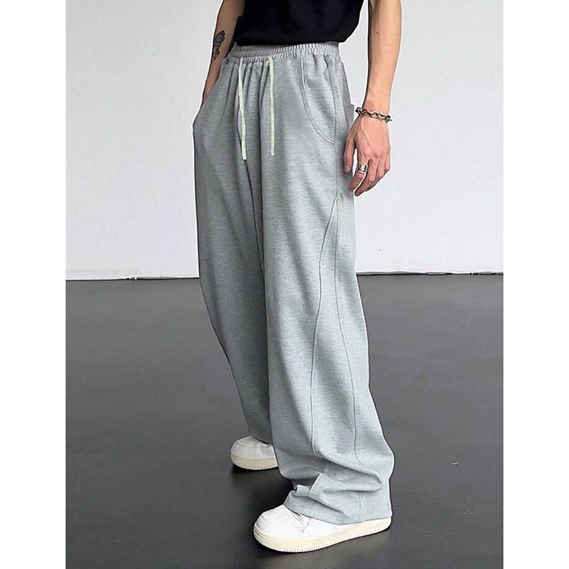 Men's Wide Leg Sweatpants Athletic Pants Trousers Drawstring Elastic Waist Plain Comfort Breathable Casual Daily Holiday Sports Fashion Black White