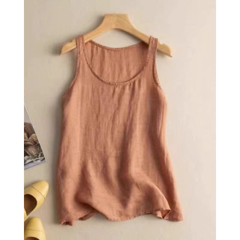 Women's Cotton Linen Vest Blouse Plain Casual Sleeveless Crew Neck Regular Tops Daily Holiday White Orange Green Khaki Summer