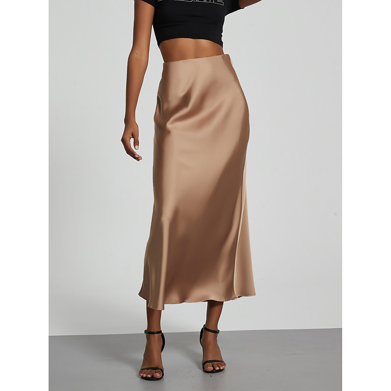 Women's Skirt Bodycon Elegant Fashion Midi High Waist Skirts Plain Micro-elastic Party Street Black Wine Khaki Dark Grey Spring Satin Polyester