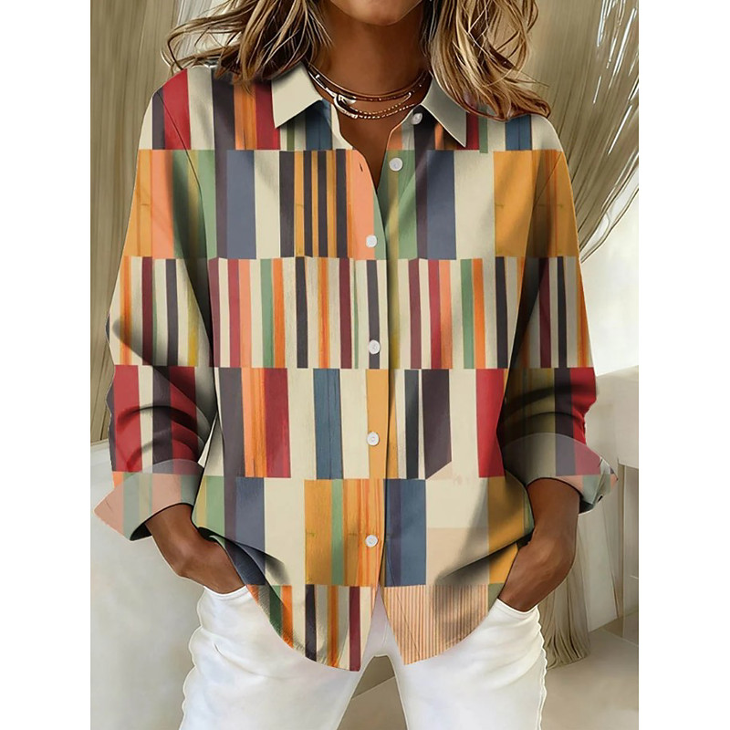 Women's Shirt Blouse Graphic Geometric Plaid Vintage Tropical Daily Long Sleeve Shirt Collar Regular Tops Daily Patchwork Buttons Print Blue Red Light Purple Purple Orange Spring Fall Winter