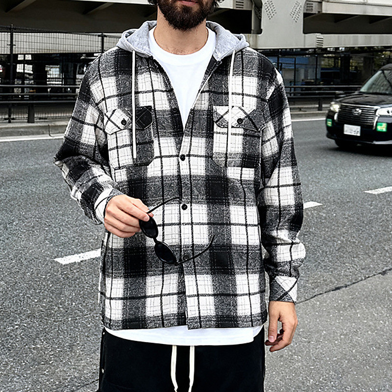 Men's Lightweight Jacket Shirt Jacket Casual Jacket Shacket Outdoor Street Pocket Buttons Spring Fall Plaid Streetwear Daily Turndown Regular Black White Burgundy Green Khaki Jacket