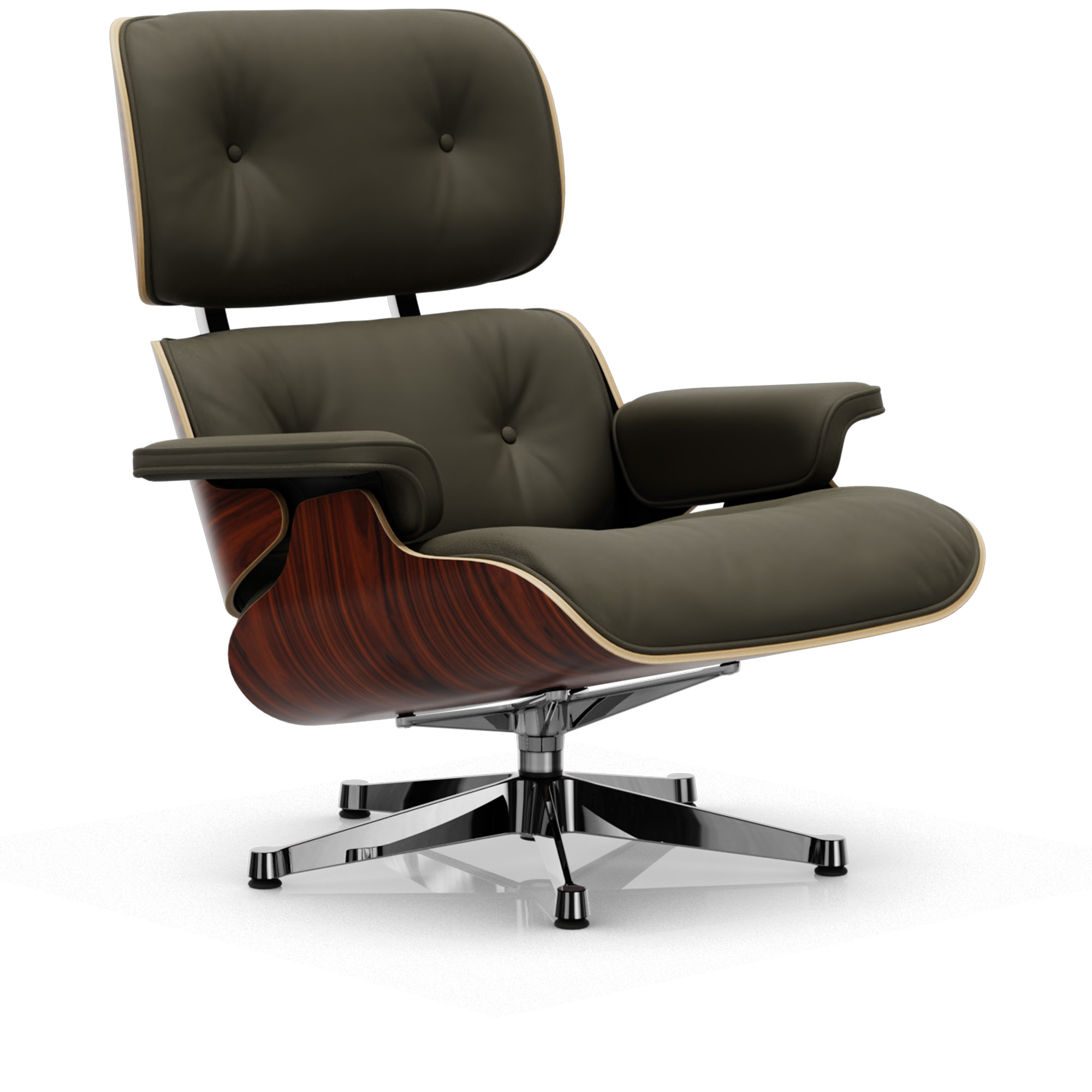 Vitra - Eames Lounge Chair Santos Palisander Leather Premium Khaki 58 Polished Aluminium - Fåtöljer - Charles & Ray Eames - Läder/Metall/Trä