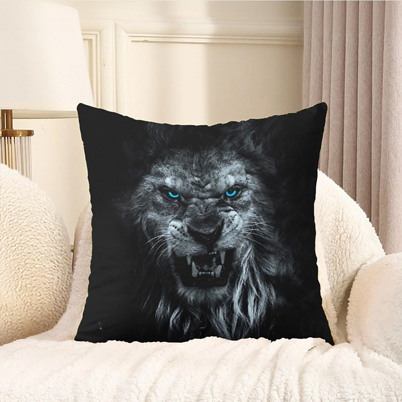 Animal Decorative Toss Pillows Cover 1PC Soft Square Couch Cushion Case Pillowcase for Bedroom Livingroom Sofa Chair Scary Lion