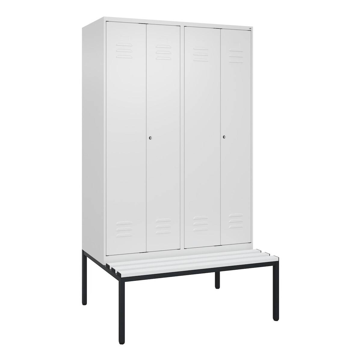 C+P Doppel-Spind Classic PLUS Kunststoff untergebaute Bank, 4 Abteile, Trennwand, HxBxT 212x120x82cm, Zylinderschloss, Verkehrsweiß von PROREGAL