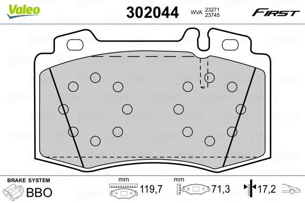 Jarrupalasarja, levyjarru, Etuakseli Valeo 302044 - mercedes-benz - OE 0034205820, 0044200520, 0044209020