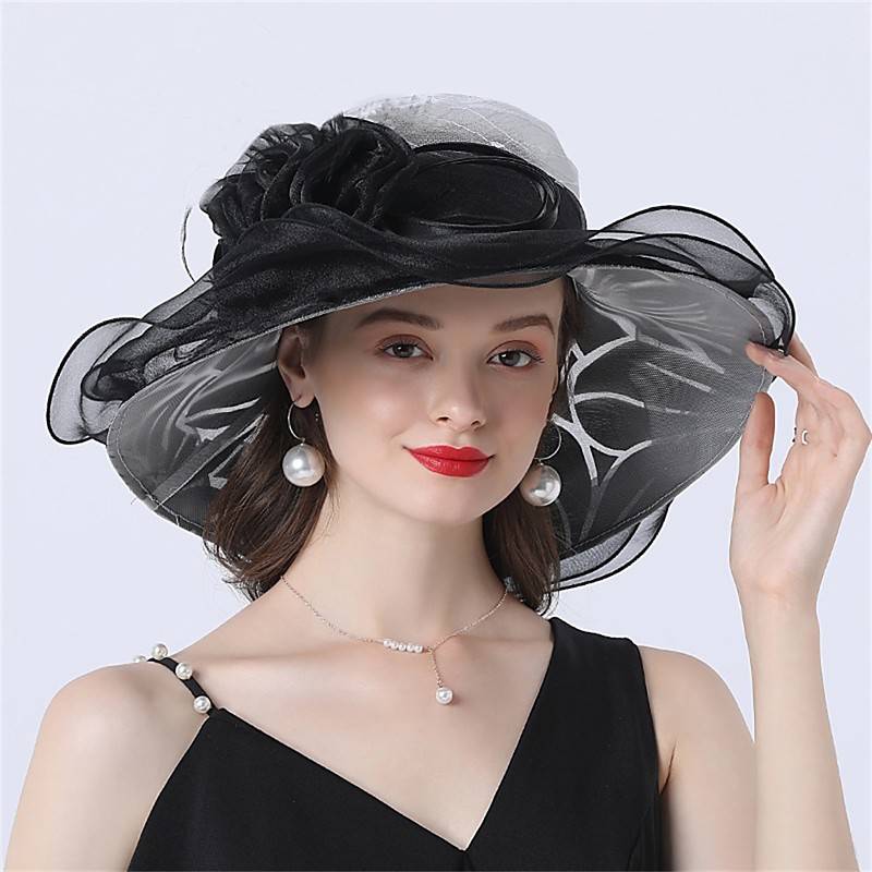 Hats Organza Sun Hat Holiday Tea Party Horse Race Cocktail Elegant Vintage Cute With Floral Headpiece Headwear