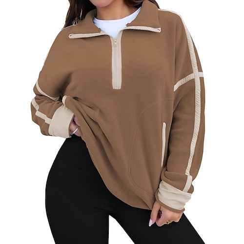 Per donna Blusa Tinta unica Elegante Casual Manica Lunga Collo Alto Top Regolari Quotidiano Cerniera Blu Bianco Marrone Albicocca Primavera Autunno Inverno