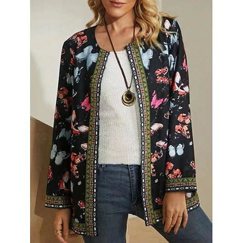 Per donna Giacca Casual Antivento Caldo Tasca Blocco di colore Aperturaanteriore Moderno Floreale Casuale Quotidiano Casual Quotidiano Corto Girocollo Vestibilità regolare Manica Lunga Capispalla