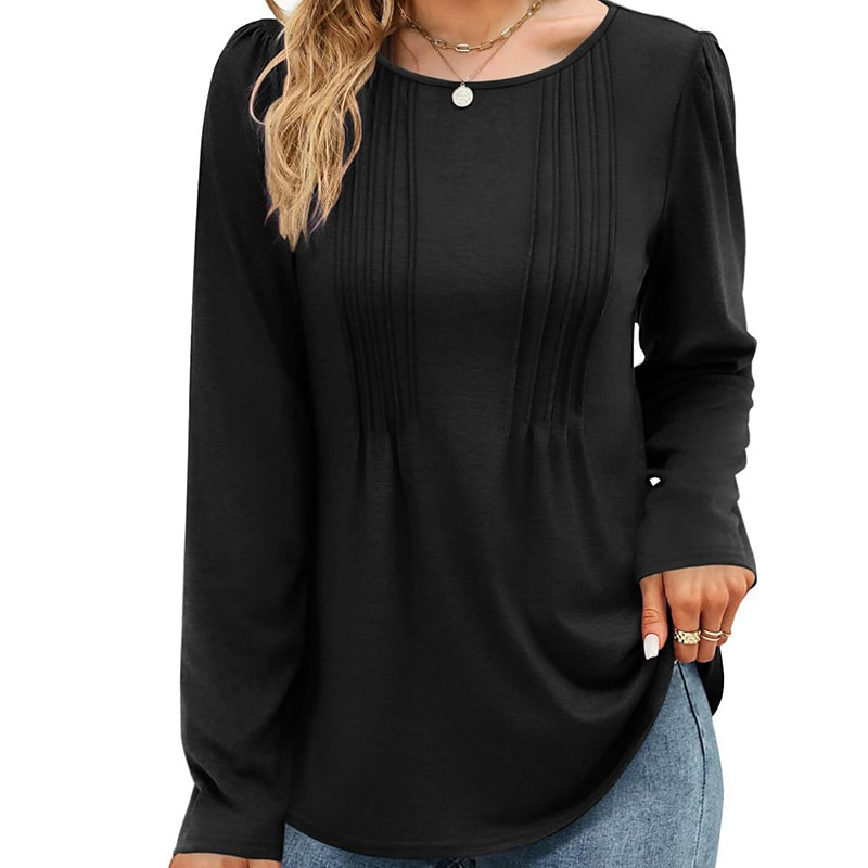 Women's Blouse Solid Color Stylish Casual Long Sleeve Crew Neck Regular Tops Daily Ruched Black Red Purple Brown Beige Summer Spring Fall
