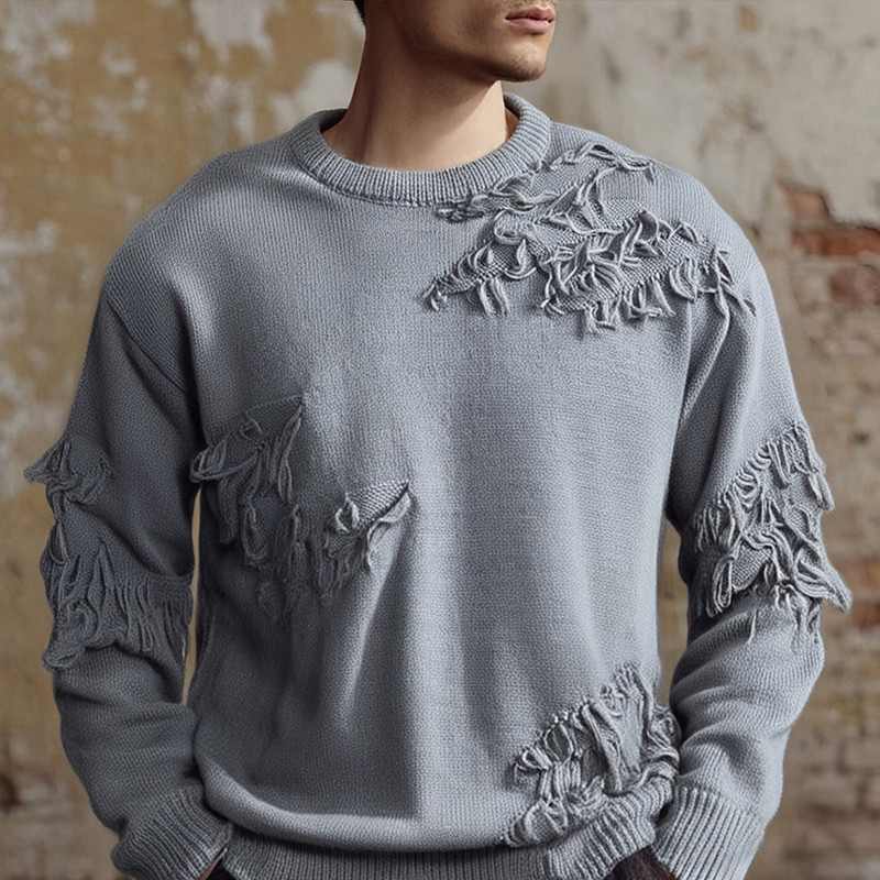 Men's Pullover Sweater Jumper Knit Sweater Ribbed Knit Regular Tops Knitted Ripped Plain Crew Neck Fashion Basic Vacation Daily Wear Clothing Apparel Fall Winter Black Khaki M L XL