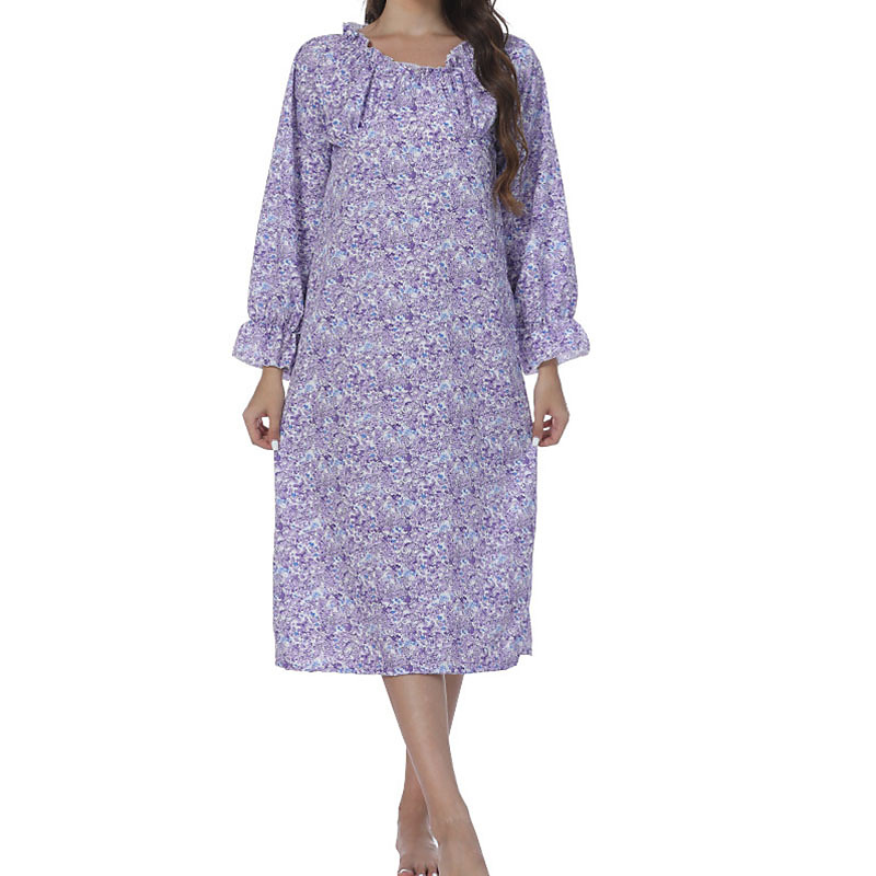 Women's Pajamas Loungewear Fashion Casual Floral Ruffle Dress Vacation Home Long Sleeve Crew Neck Purple Spring Fall Winter Regular Fit