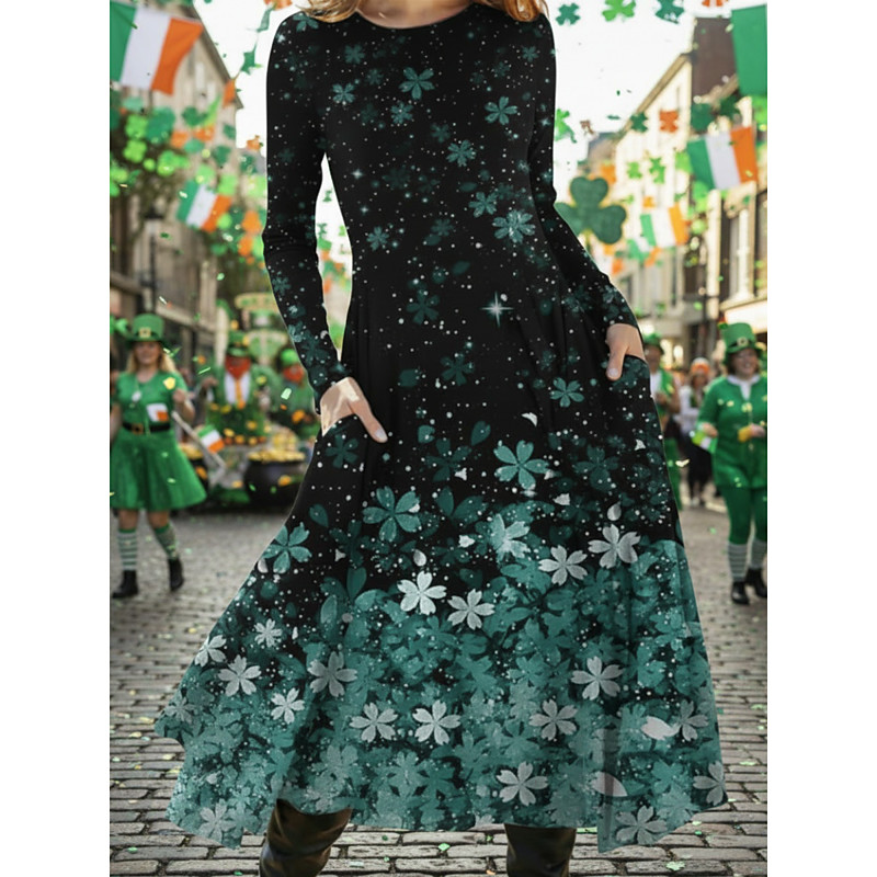 Carnival Women's T shirt Crew Neck Long Sleeve Tunic Graphic Casual Regular Tops Daily Print Green Spring Fall