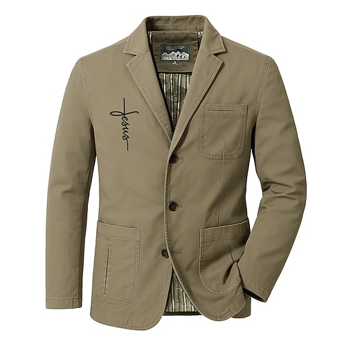 Per uomo Stampa Lettere Fede Blazer Giacca da abito in cotone Cappotto da abito Casual All'aperto Abbigliamento Quotidiano Tasche Multiple Giacca da abito con fodera a righe a tre bottoni Autunno