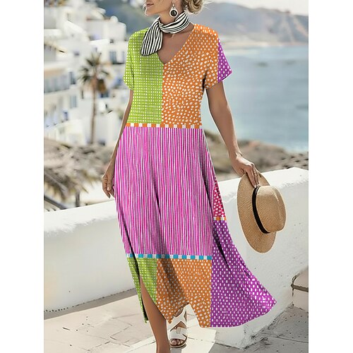 Per donna Abito Midi Vestito Casual Abito a trapezio Abito Stampato Moda Moderno All'aperto Vacanza Weekend Vestibilità comoda Ombre Geometrico Manica Corta Scollo a V Blu Rosa polveroso Rosa Viola