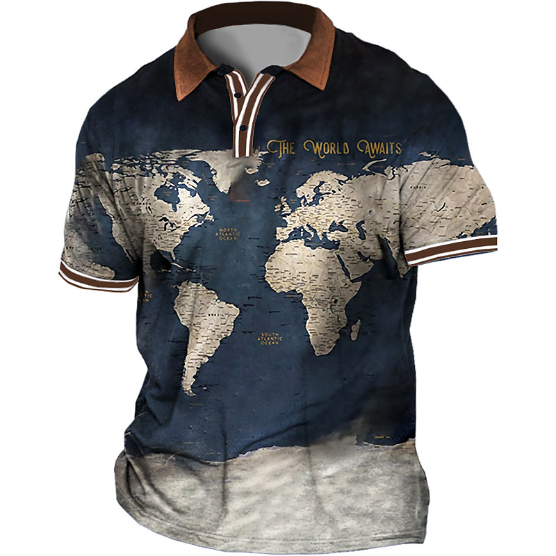 Men's Plus Size Polo Shirt Big and Tall Map Turndown Print Short Sleeve Spring Summer Sports Fashion Streetwear Designer Outdoor Street Tops