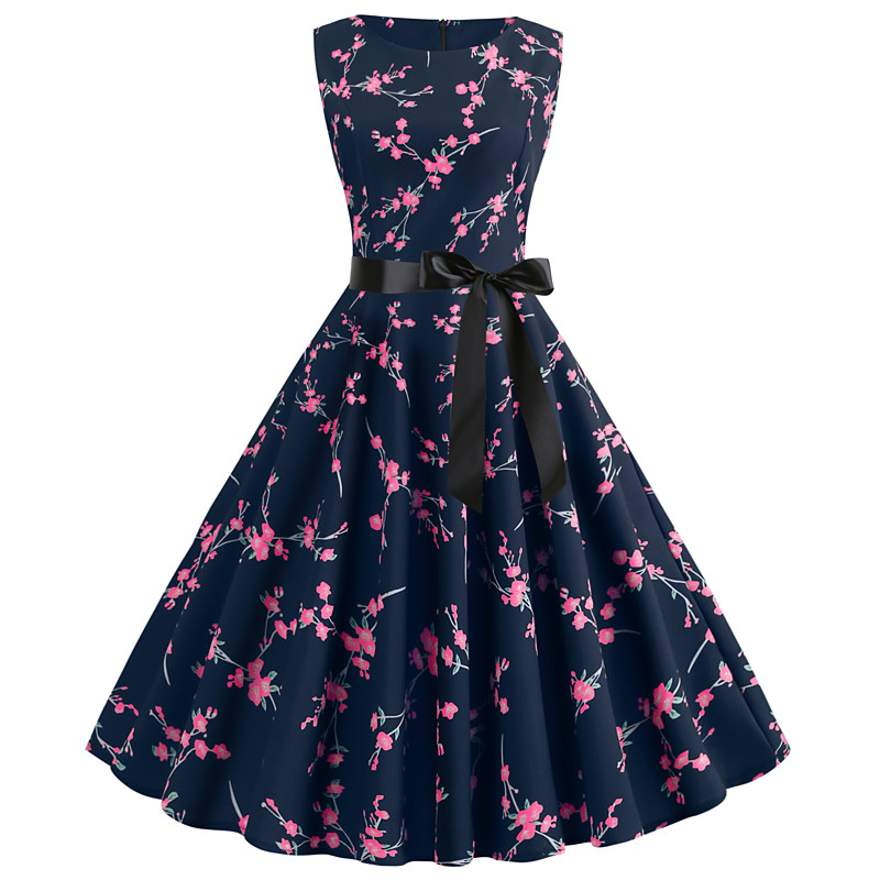 Women's Print Vintage Dress Long Dress Maxi Dress Elegant Polka Dot Crew Neck Sleeveless Daily Date Summer Spring Blue Dark Green