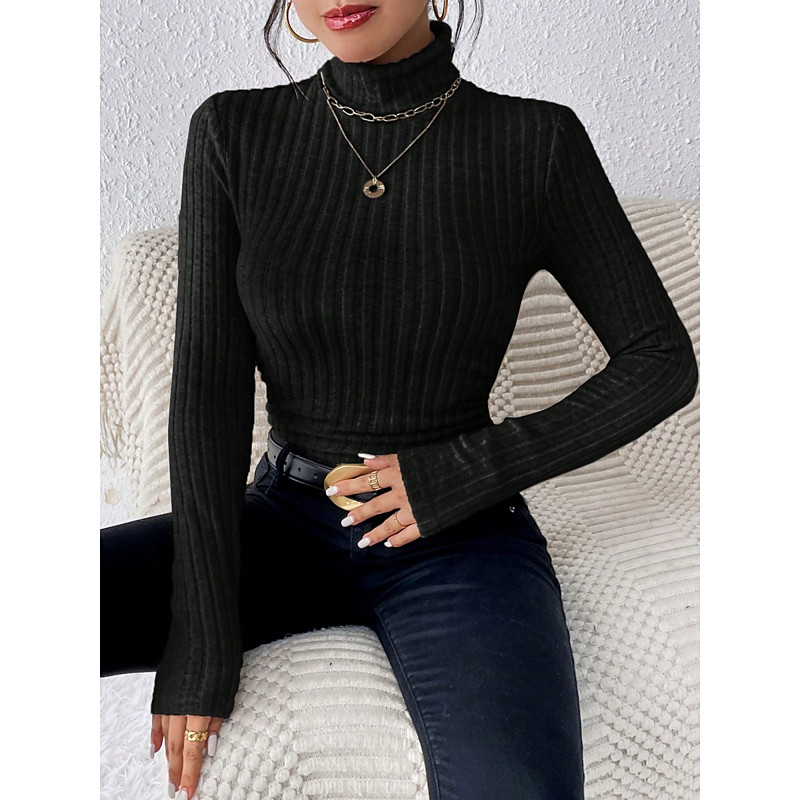 Women's Blouse Solid Color Stylish Casual Long Sleeve Turtleneck Regular Tops Daily Ruched Buttons Black White Purple Apricot Gray Spring Fall Winter
