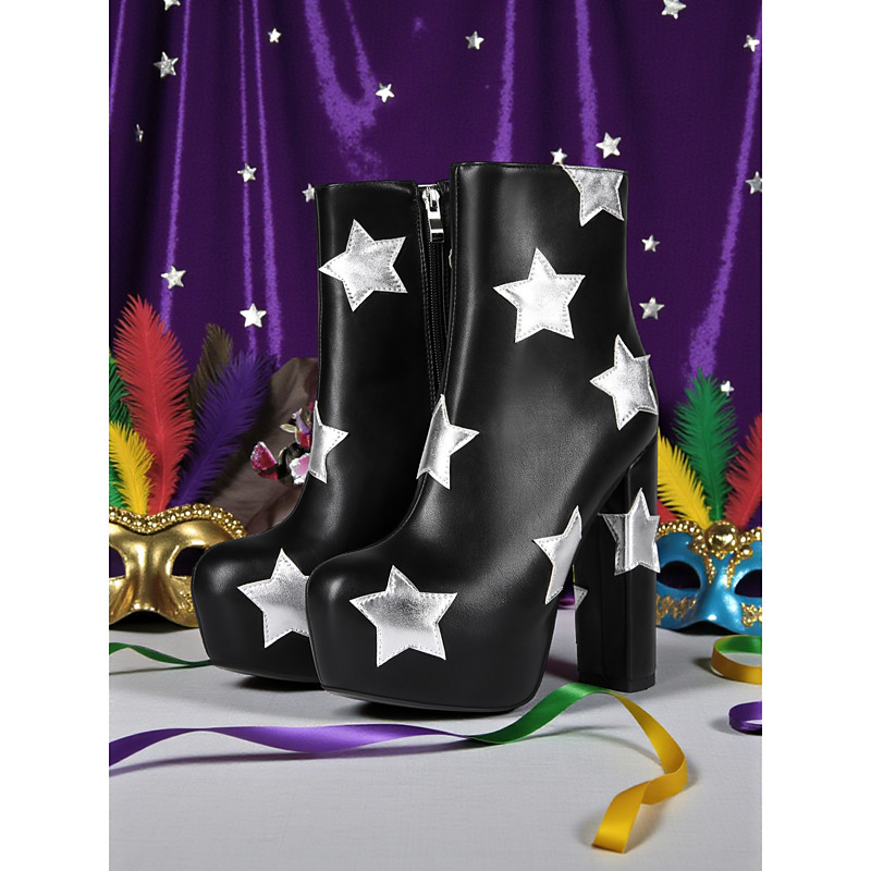 Women's Platform Ankle Boots with Silver Star Details, High Heel, Stylish Party and Carnival Footwea