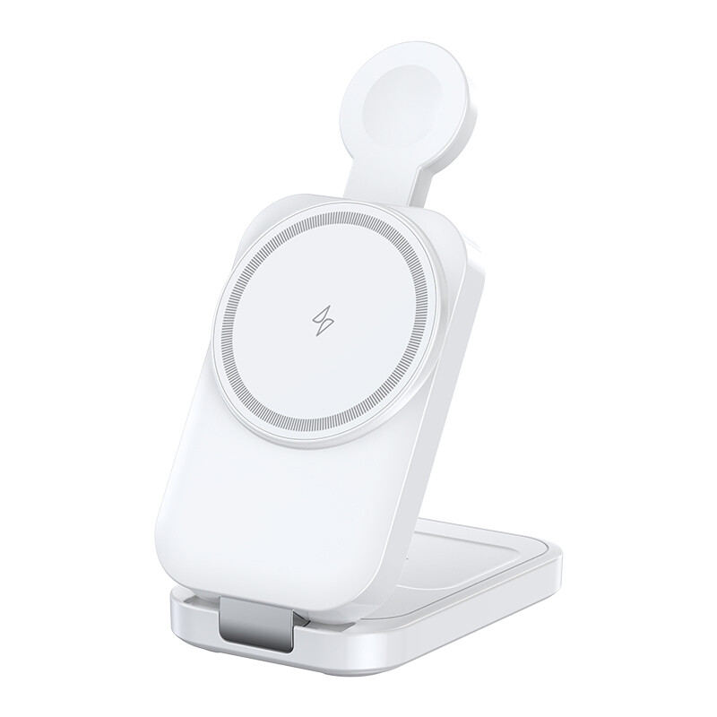 Rexsun 3-in-1 Opvouwbaar Magnetisch Draadloos Laadstation, 15W Snelladen, voor MagSafe-Lader, Reisformaat, Compatibel met iPhone 16/15/14/13/12, Apple Watch, AirPods, Voedingsadapter Niet Inbegrepen, T18, Wit
