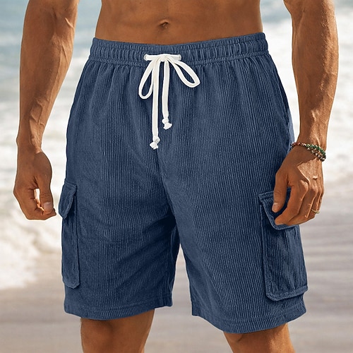 Herren Shorts Freizeitshorts Cordshorts Tasche Elastischer Bund Einfach Komfort Atmungsaktiv Kurz Outdoor Urlaub Alltagskleidung Mode Streetwear Blau Schwarz Mikroelastisch