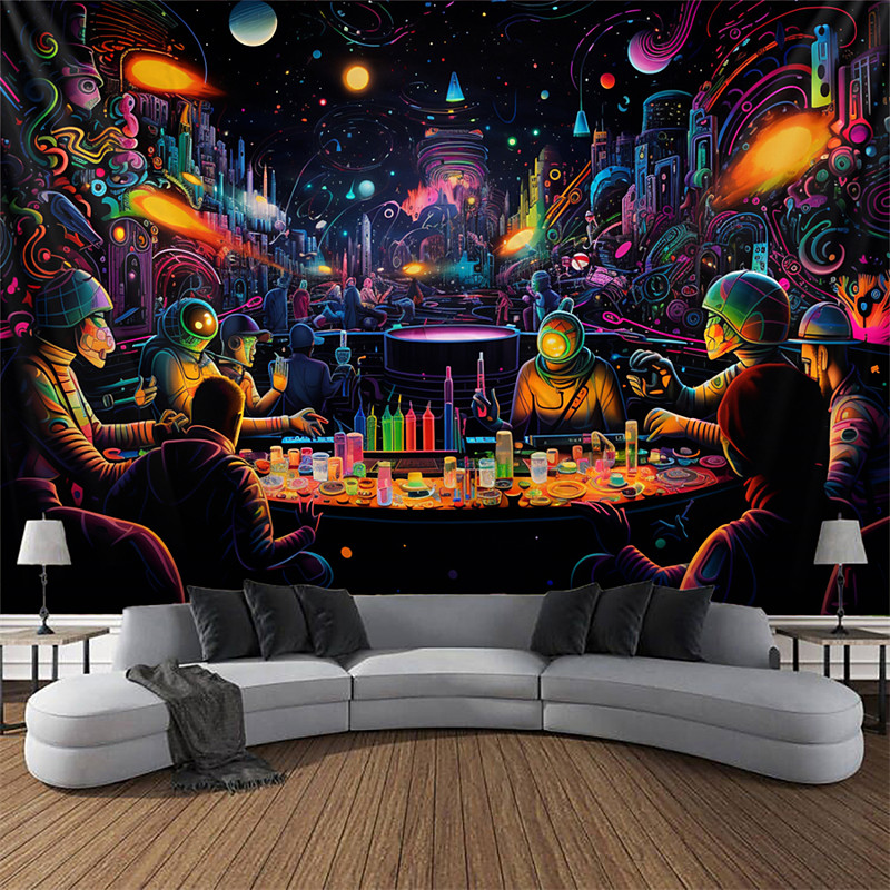 Blacklight Tapestry UV Reactive Glow in the Dark Glow Party Neon Trippy Misty Bar Concert Hanging Tapestry Wall Art Mural for Living Room Bedroom