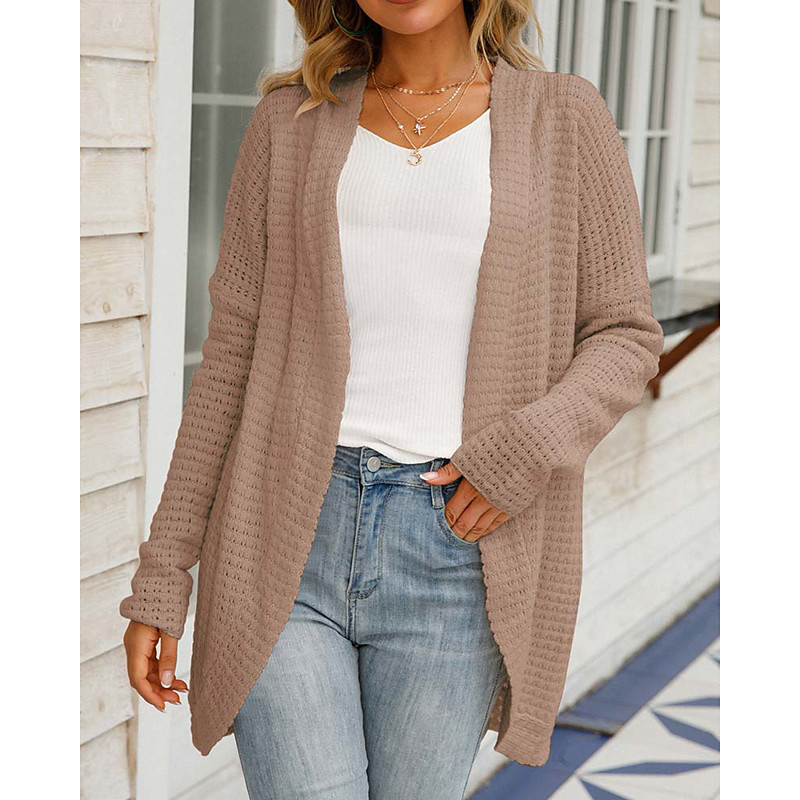 Women's Sweater Cardigan Daily Casual Solid Color Open Front Knitted Long Sleeve Long Tops Knit Home Work Khaki Light Grey Fall Winter