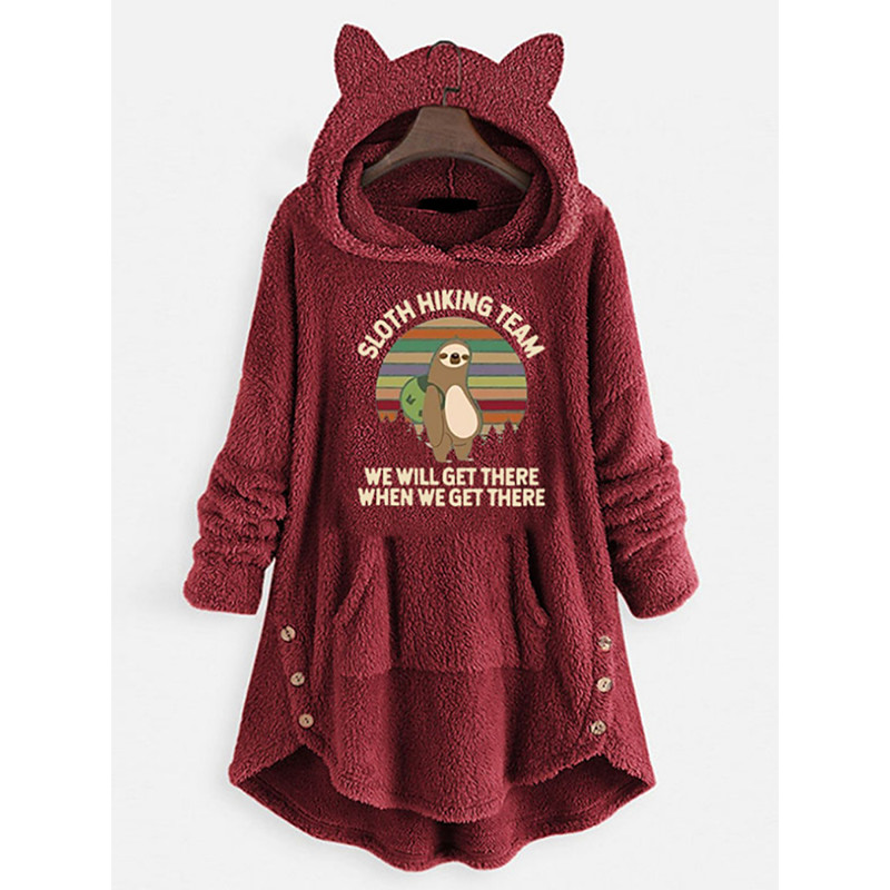 Women's Pullover Hoodie Sweatshirt Letter Warm Teddy Classic Long Sleeve Hooded Long Tops Home Work Dailywear Buttons Maroon Black Pink Green Spring Fall Winter Spring, Fall, Winter
