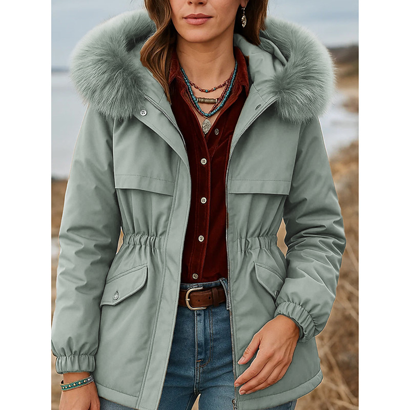Women's Winter Coat Warm Comfortable Zipper Pocket Casual Solid Color Vacation Street Casual Daily Wear Long Hooded Regular Fit Long Sleeve Outerwear Black Pink Red Fall Winter