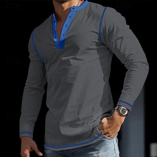 Per uomo maglietta Camicia Henley T-shirt in maglia waffle T-shirt Maglia a maniche lunghe Color Block Henley Strada Da mare Manica lunga Collage Abbigliamento Poliestere Di tendenza Originale