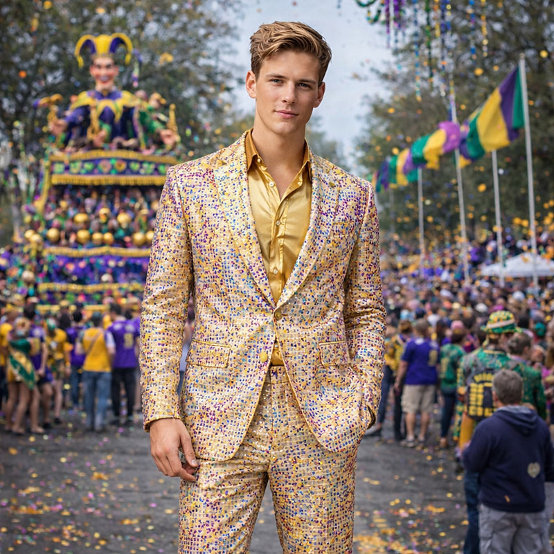 Mardi Gras 2026 T-shirt Sleeve T-shirt for Unisex Adults' Hot Stamping for Carnival Mardi Gras Club Festival
