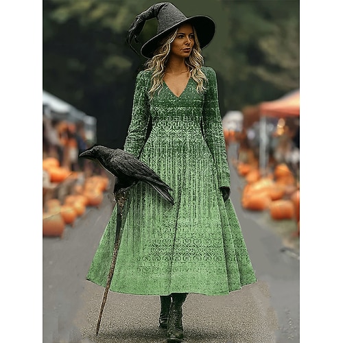 Per donna Abito Midi Abito a trapezio Vacanza Casual Quotidiano Ferie Data Vestibilità regolare Ombre Grafico Manica Lunga Scollo a V Blu Viola Arancione Verde Autunno Inverno
