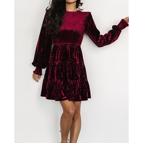 Per donna Mini Abito Abito di Natale Abito in Velluto Abito da Cocktail Abiti Peplo Elegante Moda Moderno Festa serale Feste Data Vestibilità regolare Semplice Manica Lunga Girocollo Nero Vino Verde