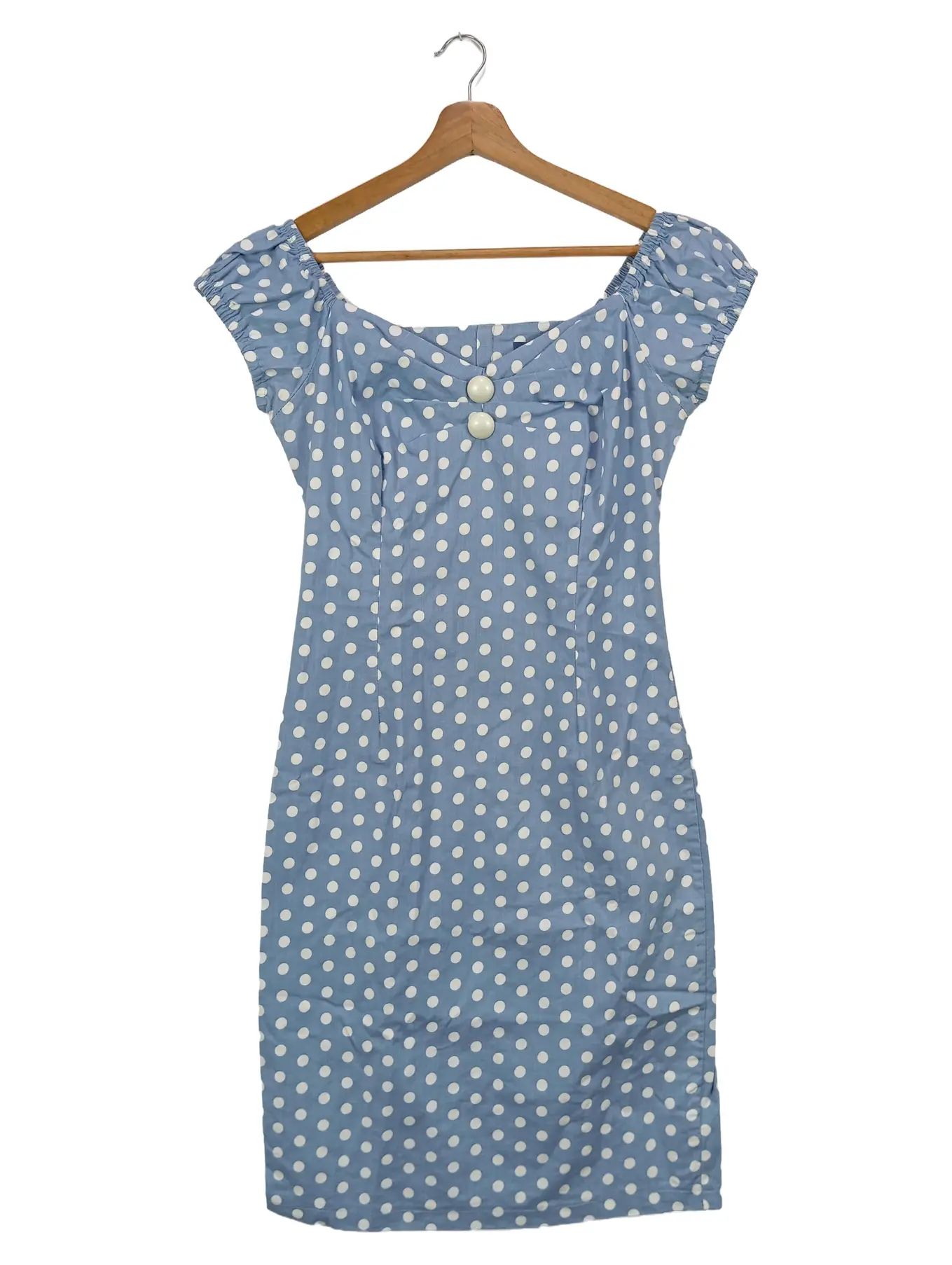 COLLECTIF Vintage Kleid L Blau Gepunktet Midi
